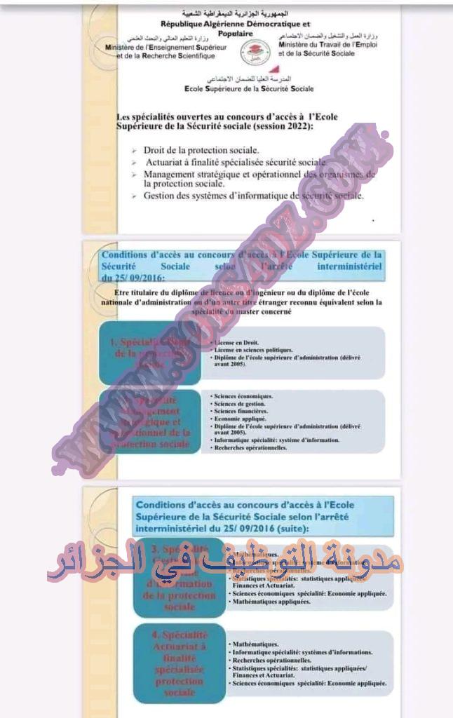 تعلن المدرسة العليا للضمان الاجتماعي عن فتح مسابقة لدورة 2202