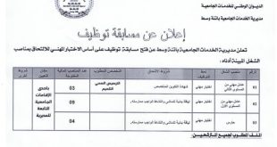 أكمل القراءة »اعلان عن مسابقات توظيف بمديرية الخدمات الجامعية