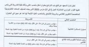 أكمل القراءة »اعلان عن فتح باب الترشح للمناصب العالية بالمعهد التكنولوجي المتخصص للتكوين في الخضروات والزراعات الصناعية لولاية الجزائر