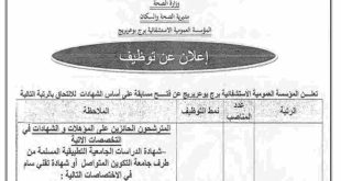 وزارة الصحة مديرية الصحة والسكان المؤسسة العمومية الاستشفائية برج بوعريريج ads إعلان عن توظيف تعلن المؤسسة العمومية الاستشفائية ببرج بوعريريج عن فتح مسابقة على أساس الشهادات للالتحاق بالرتبة التالية: الرتبةعدد المناصبنمط التوظيفالملاحظةملحق رئيسي للإدارة01على أساس الشهادةالمترشحون الحائزون على المؤهلات والشهادات في التخصصات الآتية:– شهادة …
