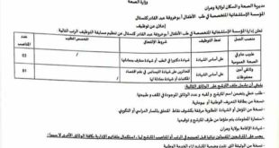 وزارة الصحة ads إعلان توظيف تعلن الإدارة المركزية لوزارة الصحة عن فتح مسابقة للتوظيف في الرتب المبينة أدناه: الرتبةعدد المناصب المالية المفتوحةنمط التوظيفشروط الالتحاقمهندس دولة في الإعلام الآلي04مسابقة على أساس الشهاداتمن بين المترشحين الحائزين على شهادة مهندس دولة في الإعلام الآلي أو شهادة معادلة …