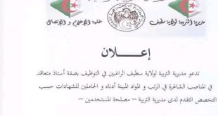أكمل القراءة »مديرية التربية لولاية سطيف توظف أساتذة متعاقدين