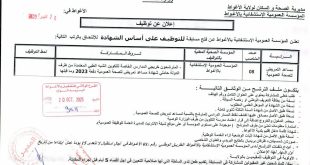 أكمل القراءة »إعلان عن توظيف وطني بصفة التعاقد (150 منصب)