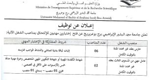 أكمل القراءة »إعلان عن توظيف بجامعة محمد البشير الإبراهيمي برج بوعريريج