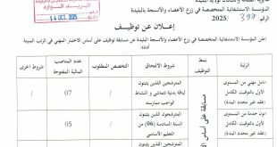 أكمل القراءة »إعلان عن توظيف بالمعهد الوطني لتكوين موظفي قطاع التربية الوطنية الورود و البنفسج – البليدة