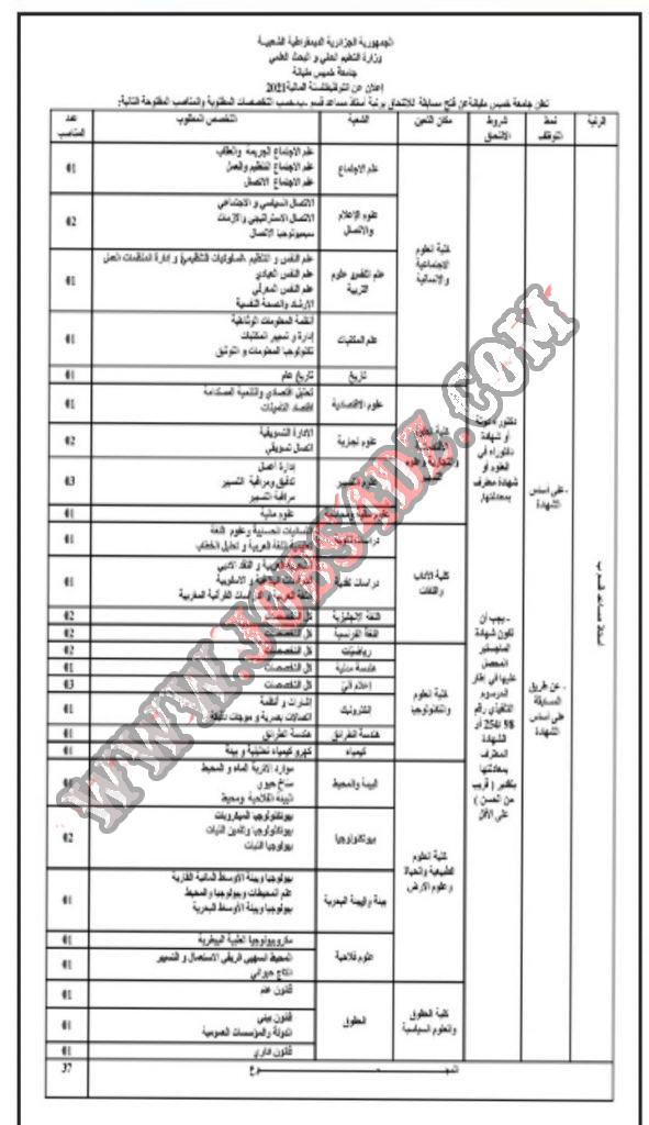 تعلن جامعة خميس مليانة عن فتح مسابقة للتوظيف في رتبة استاذ مساعد قسم ب بعنوان السنة المالية 2021 كما هو مبين ادناه