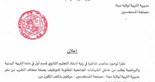 تعلن الناحية العسكرية السادسة لفائدة هياكلها عن توظيف مباشر (مستخدم مدني شبيه)