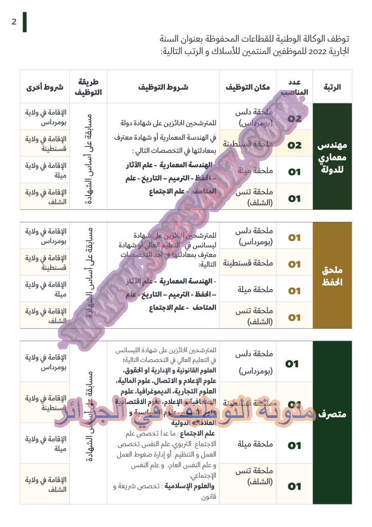 توظف الوكالة الوطنية للقطاعات المحفوظة بعنوان السنة الجارية 2022 للموظفين المنتمين للأسلاك و الرتب التالية: