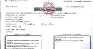 الملحقة المحلية للتشغيل ولاد رشاش بخنشلة عرض عمل ببنك بدر La banque BADR ads تعلن الملحقة المحلية للتشغيل ولاد رشاش عن عرض عمل بببنك بدر La banque BADR كما هو موضح ادناه الهيئة المستخدمة ببنك بدر La banque BADR المناصب المطلوبة JURISTE 01CAISSIER 01GUICHETIER …