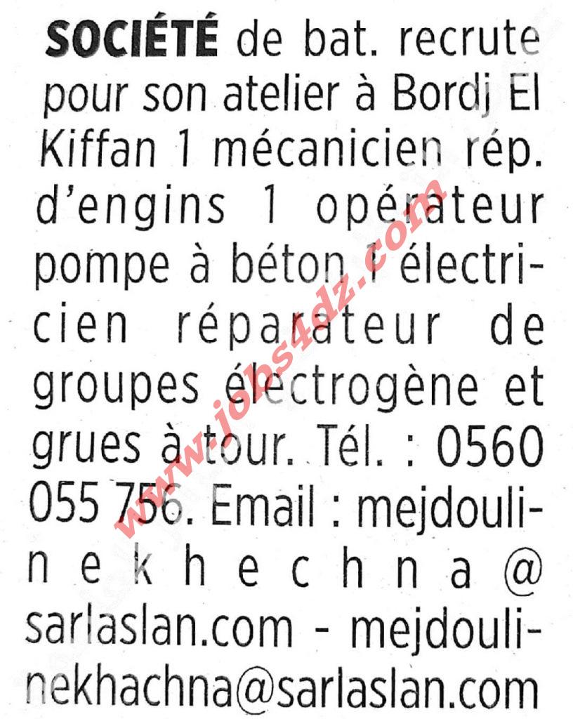 شركة بناء توظف لصالح ورشتها المتواجدة ببرج الكيفان بالجزائر العاصمة :