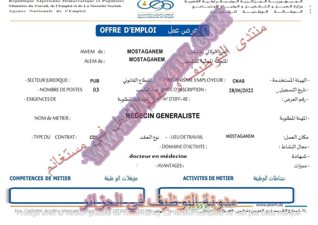 هــــــام جــــدًّا : كل من يهمه عرض العمل يتقرب من الملحقة المحلية للتشغيل مستغانم