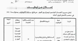 تعلن الملحقة المحلية للتشغيل عين الصفراء عن عرض عمل بتعاونية الحبوب والبقول الجافة CCLS كما هو موضح ادناه
