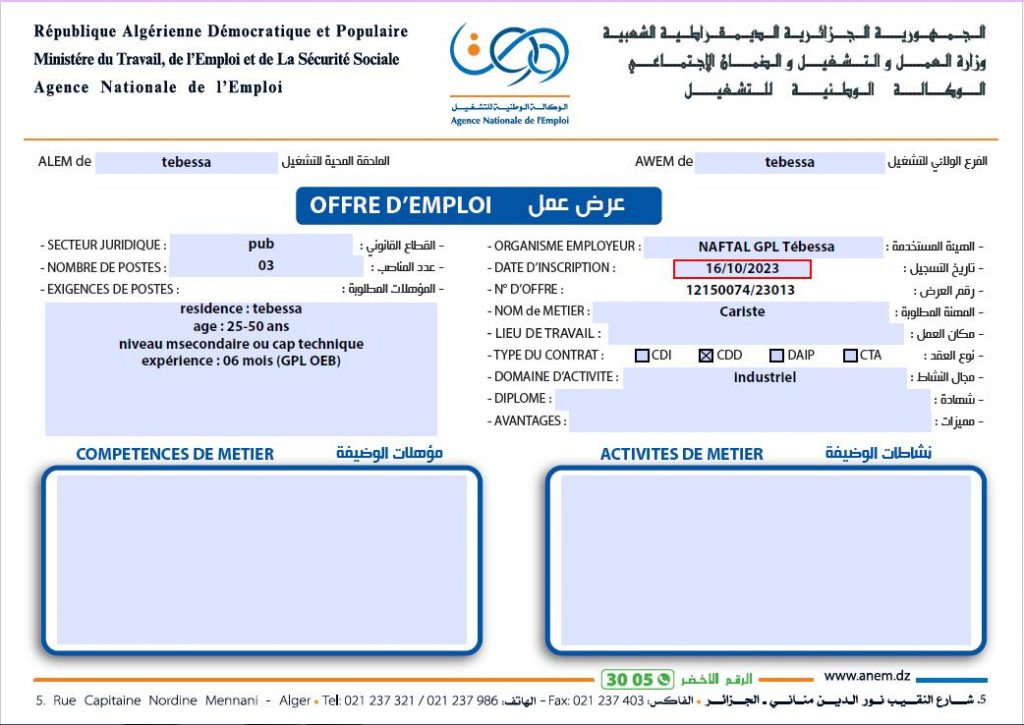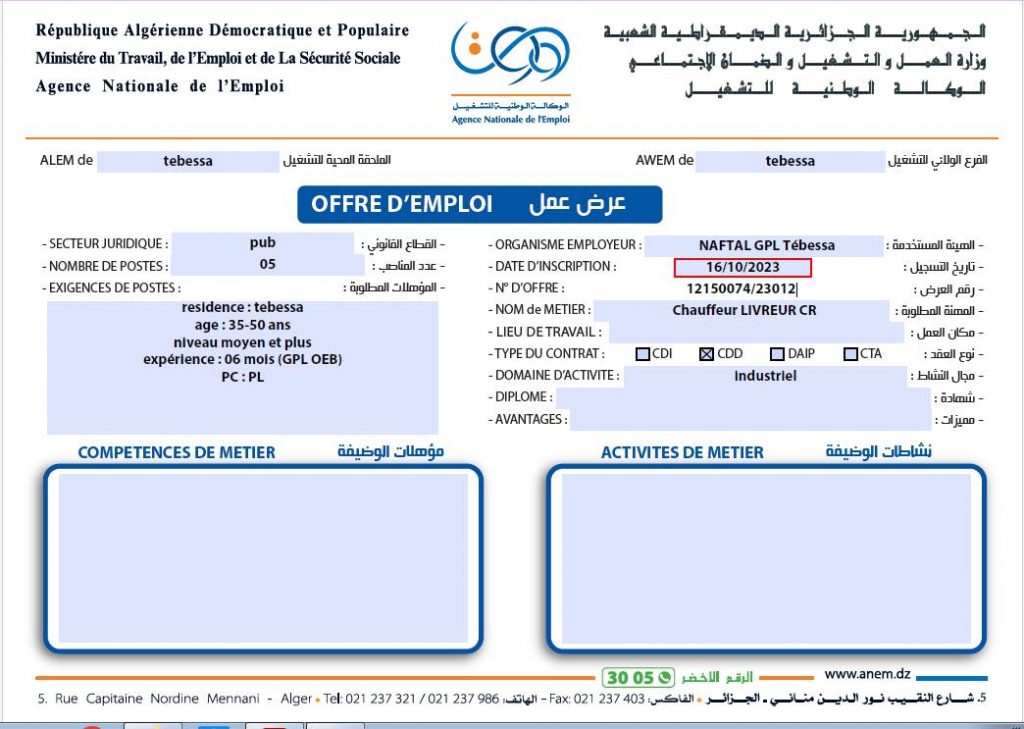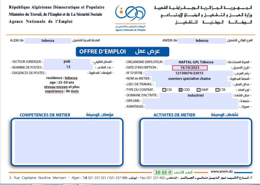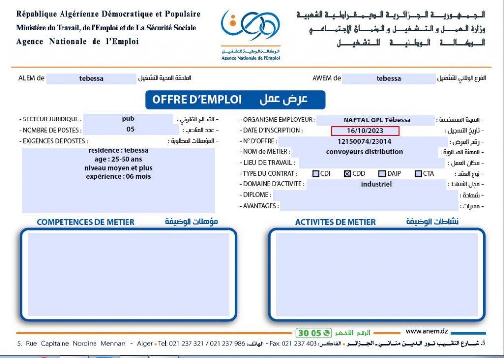 تعلن الملحقة المحلية للتشغيل تبسة عن عرض عمل بشركة نفطال NAFTAL GPL كما هو موضح ادناه