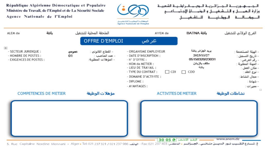 عرض عمل بمؤسسة بريد الجزائر ALGERIE POSTE شاركها Facebook Twitter LinkedIn Pinterest الفرع الولائـي للتشغيل-باتنـة الملحقة المحلية للتشغيل