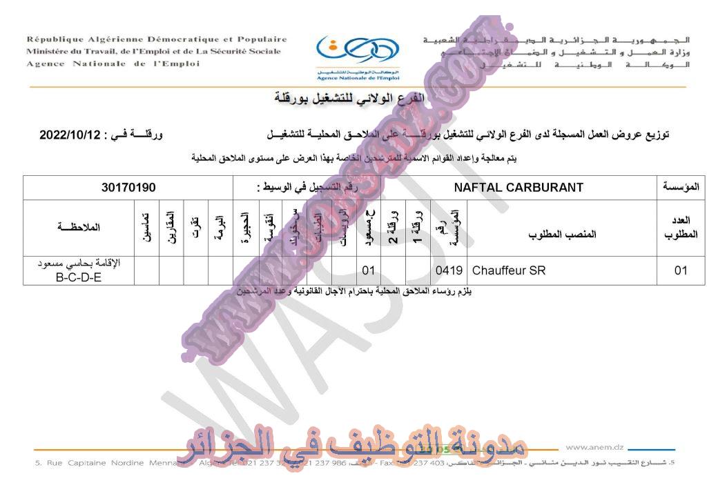 1/ الهيئة المستخدمة NAFTAL CARBURANT