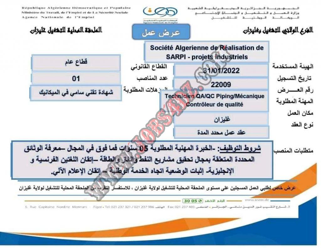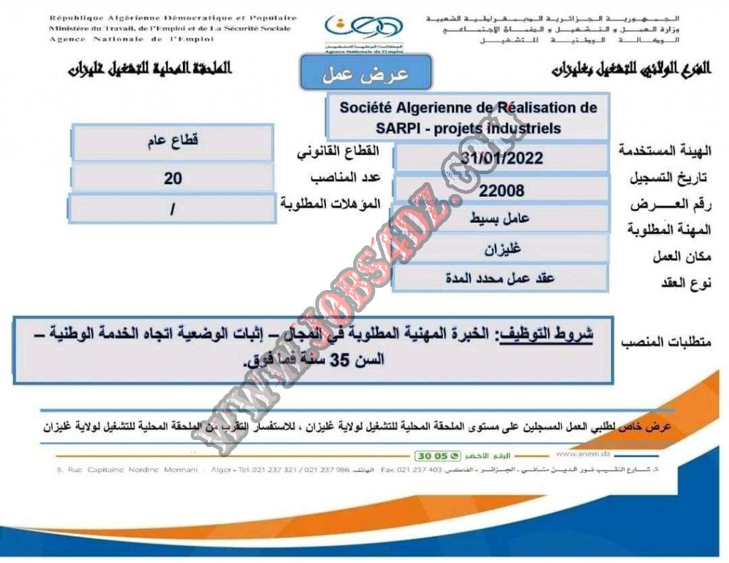 المؤسسة المستخدمة société algérienne de réalisation de projets industriels