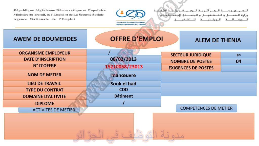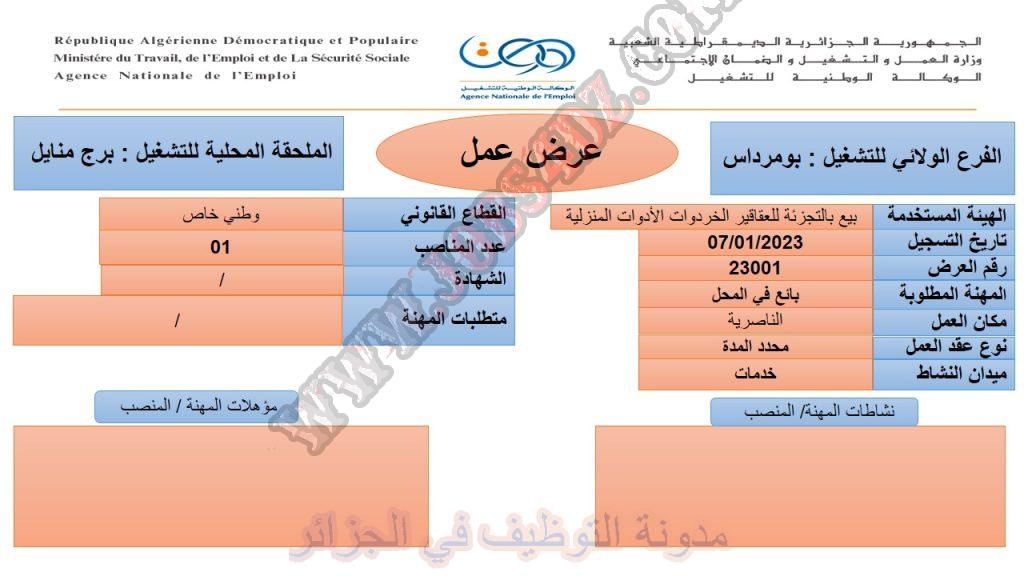 عروض عمل على مستوى ملحقات التشغيل لولاية بومرداس في المناصب المبينة ادناه