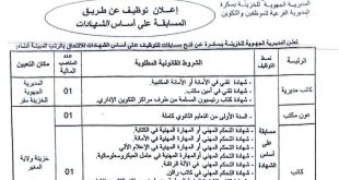 وزارة الصحة المؤسسة العمومية للصحة الجوارية مداوروش ولايـــــة ســــوق أهـــــراس ads إعلان عن توظيف مباشر على أساس الشهادة تعلن المؤسسة العمومية للصحة الجوارية مداوروش عن فتح مسابقة توظيف مباشر على أساس الشهادة لرتبة مساعدي التمريض للصحة العمومية خريجي المدارس الخاصة كما هو مبين في …