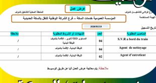 وزارة العمل والتشغيل والضمان الاجتماعي الوكالة الوطنية للتشغيل الفرع الولائي للتشغيل خنشلة الملحقة المحلية للتشغيل ششار ads عرض عمل القطاععموميالهيئة المستخدمةمؤسسة البث الإذاعي و التلفزي – فرع أمنتاريخ التسجيل2026/01/20رقــــــــــــــم11180065/26002إســــــــــــــمعون أمن و حماية (Agent de securite)نــــــــــــوعمحدد المدة (CDD)عدد المناصب04مكـــــــــــــانبلدية جلال – ولاية خنشلةمجال النشاطحماية منشآت …