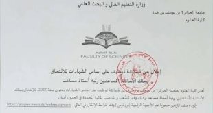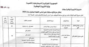 وزارة التربية الوطنية مديرية التربية لولاية جانت ads 18 جانفي 2026 إعلان عن فتح مسابقة على أساس الشهادة بعنوان سنة 2025 تعلن مديرية التربية لولاية جانت عن فتح مسابقة للتوظيف على أساس الشهادة للالتحاق بالرتب المدونة أدناه: الرتبةنمط التوظيفشروط الالتحاقالتخصص المطلوبعدد المناصب المالية المفتوحةمكان …