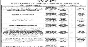 وزارة التضامن الوطني والأسرة وقضايا المرأة ولاية الجزائر مديرية النشاط الاجتماعي والتضامن مصلحة الإدارة العامة والوسائل ads إعلان عن توظيف تعلن مديرية النشاط الاجتماعي والتضامن لولاية الجزائر عن فتح مسابقة للتوظيف على أساس الشهادة في الرتب المبينة أدناه: الرتبعدد المناصبمكان التعيينشروط الالتحاق والفروع والتخصصات …