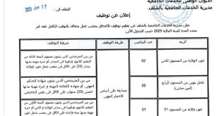اعلانات توظيف الولايات المعنية: الجزائر العاصمة، بجاية، جيجل، سطيف، قسنطينة، سوق أهراس، غرداية، الجلفة، تيسمسيلت، باتنة، ميلة، خنشلة، بسكرة ووهران يرجى من المهتمين التقرب من الادارة المعنية بالعرض او الملحقة المحلية للتشغيل حسب طبيعة الاعلان ads جامعة الجزائر 2- أبو القاسم سعد الله كلية …