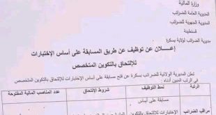 وزارة المالية المديرية العامة للضرائب المديرية الجهوية للضرائب قسنطينة مديرية الضرائب لولاية بسكرة ads إعلان عن توظيف عن طريق المسابقة على أساس الإختبارات للإلتحاق بالتكوين المتخصص تعلن المديرية الولائية للضرائب بسكرة عن فتح مسابقة على أساس الإختبارات للإلتحاق بالتكوين المتخصص في الرتب المبينة أدناه: …