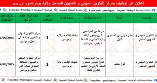 أبريل 23, 2025	الوظيف العمومي, بومرداس, توظيف حسب الولايات