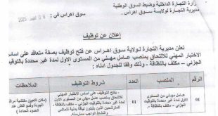 وزارة التجارة الداخلية وضبط السوق الوطنية مديرية التجارة لولاية سوق أهراس ads سوق اهراس في : 08 أكتوبر 2025 إعلان عن توظيف تعلن مديرية التجارة لولاية سوق اهراس عن فتح توظيف بصفة متعاقد على أساس الاختبار المهني للالتحاق بمنصب عامل مهني من المستوى الأول …