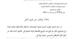 وزارة الداخلية والجماعات المحلية والتهيئة العمرانية المديرية العامة للمواصلات السلكية واللاسلكية الوطنية مديرية المواصلات السلكية واللاسلكية الوطنية لولاية برج بوعريريج ads إعلان توظيف عن طريق النقل من أجل تدعيم الموارد البشرية لمديرية المواصلات السلكية واللاسلكية الوطنية لولاية برج بوعريريج ، تعلن عن فتح باب …