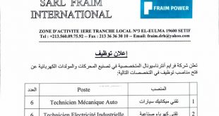 الوكالة الولائية للتشغيل: خنشلة الملحقة المحلية للتشغيل: خنشلة ads عرض عمل الهيئة المستخدمة: cosider تاريخ التسجيل: 05/02/2025 رقم العرض: 40120006/25004 متطلبات الوظيفة: نوع العقد: CDD مديرية التربية تفتح مسابقة توظيف العمال المهنيين 180 منصب سوناطراك توظف في التخصصات الطبية والادارية وأعوان الأمن مديرية التربية: …
