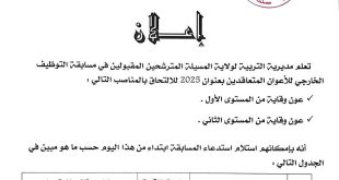 وزارة التربية الوطنية مديرية التربية لولاية بسكرة مصلحة الدراسة والامتحانات ads إعلان عن توظيف تعلن مديرية التربية لولاية بسكرة عن فتح مسابقة على أساس الشهادة بعنوان 2025 في الرتبة المبينة أدناه: الرتبةنمط التوظيفشروط التوظيفعدد المناصب المفتوحةمساعد وثائقي أمين محفوظاتمسابقة على أساس الشهادةمن بين المترشحين …