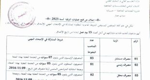 وزارة التعليم العالي و البحث العلمي مديرية الخدمات الجامعية مديرية الخدمات الجامعية – عنابة ads إعلان عن فتح عمليات الترقيـة لسنة 2025 – ليكن في علم كافة الموظفين الرسميين المطلوبين لمتابعة للمشاركة في الإمتحان المهني للإنتقال إلى أنهم مدعوون لتقديم طلبات مشاركتهم في أجل …