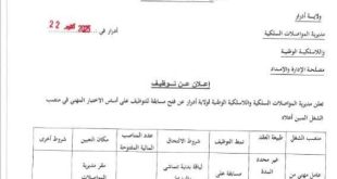 وزارة الفلاحة والتنمية الريفية والصيد البحري المديرية العامة للغابات محافظة الغابات لولاية مستغانم ads إعلان عن توظيف الرقمالرتبةنمط التوظيفشروط الإلتحاقالمهام المطلوبة01عون حفظ البياناتمسابقة على أساس الشهادةمن بين المترشحين الحائزين على شهادة الكفاءة المهنية لـ:شهادة الكفاءة المهنية لـ: عون حفظ البيانات أو شهادة معادلة لها. …