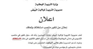 إعلان عن شغور مناصب استخلاف وتعاقد بمديرية التربية لولاية البيض