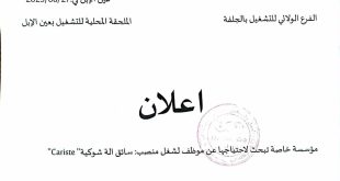 وزارة العمل والتشغيل والضمان الاجتماعي الوكالة الوطنية للتشغيل الفرع: الفرع الولائي للتشغيل عين صالح الملحقة المحلية للتشغيل- عين صالح. ads عرض عمل المؤسسة: 2sp، نوع العقد: CDD. المنصب المطلوب: Agent de sécurité عدد المناصب: 28 السن: 30/22 المستوى الدراسي: الثالثة ثانوي / أداء الواجب …