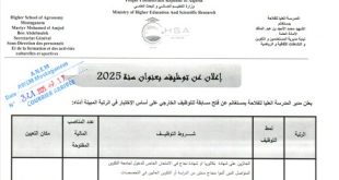 وزارة التعليم العالي والبحث العلمي المديرية الفرعية للمستخدمين ads إعلان عن مسابقة توظيف لسنة 2025 تعلن المدرسة العليا للأساتذة – بوزريعة – عن تنظيم مسابقة على أساس الشهادات للإلتحاق بسلك الأساتذة المساعدين رتبة أستاذ مساعد وفقا لشروط والضائط التوظيف المبينة في الجدول الملحق بهذا …