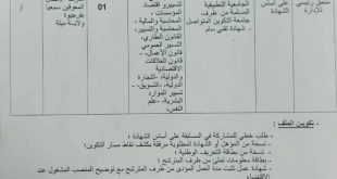 وزارة الموارد المائية مديرية الموارد المائية ولاية الوادي ads إعلان توظيف تعلن مديرية الموارد المائية لولاية الوادي عن إجراء مسابقة توظيف على أساس الشهادات للرتب المبينة أدناه: الرتبةنمط التوظيفشروط القبولالتخصصات المطلوبةعدد المناصب المفتوحةمكان التعيينشروط أخرىعون إداري رئيسيعلى أساس الشهاداتمن بين المترشحين الحائزين على شهادة …