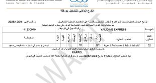 وزارة العمل و التشغيل و الضمان الاجتماعي الوكالة الوطنية للتشغيل الفرع الولائي للتشغيل تيارت الملحقة المحلية للتشغيل تيارت ads عرض عمل الهيئة المستخدمة: DIRECTION D’ALGERIE POST القطاع القانوني: قطاع اقتصادي/عام تاريخ التسجيل: 17/08/2025 مكان العمل: تيارت نوع العقد: CDD مجال النشاط: خدماتي المنصب المطلوبة: …