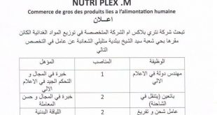 NUTRI PLEX .M Commerce de gros des produits liés à l’alimentation humaine ads إعلان تبحث شركة نتري بلاكس إم الشركة المتخصصة في توزيع المواد الغذائية الكائن مقرها بحي شيخ سعيد الشيح ببلدية متليلي الشعانية عن عامل في التخصص التالي: الوظيفةالمناصبالمؤهلمهندس دولة في الإعلام الآلي1خبرة …