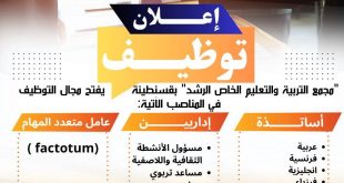 قسنطينة مدرسة الرشد ads إعلان توظيف فرصتك للانضمام إلى فريق متميّز! مجمع التربية والتعليم الخاص “الرشد” – قسنطينة يفتح أبوابه أمام الكفاءات الطموحة والشغوفة بمجال التربية والتعليم، ويُعلن عن فتح التوظيف في المناصب التالية: أساتذة في المواد التالية: اللغة العربية اللغة الفرنسية اللغة الإنجليزية …