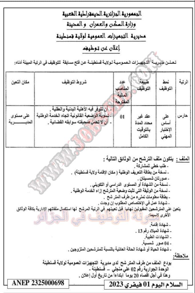 تعلن مديرية التجهيزات العمومية لولاية قسنطينة عن فتح مسابقة توظيف على اساس الاختبار المهني في الرتب المبينة ادناه