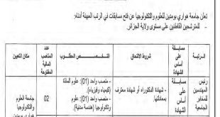 - اعلان عن توظيف بجامعة العلوم والتكنولوجيا هواري بومدين الجزائر العاصمة