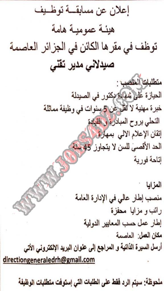 هيئة عمومية هامة توظف في مقرها الكائن في الجزائر العاصمة
