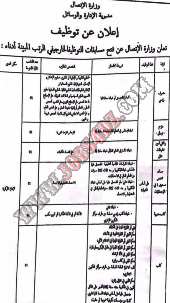 تعلن وزارة الاتصال عن فتح مسابقات لتوظيف الخارجي على أساس الشهادة في الرتب المبينة ادناه
