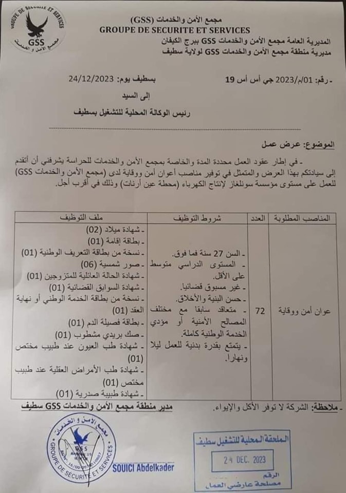 إعلان توظيف بمجمع الأمن والخدمات GSS (72 منصب) شاركها Facebook Twitter LinkedIn Pinterest الوكالة المحلية للتشغيل