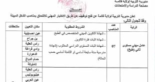 - قالمة… مسابقة توظيف العمل المهنيين بمديرية التربية (162 منصب)
