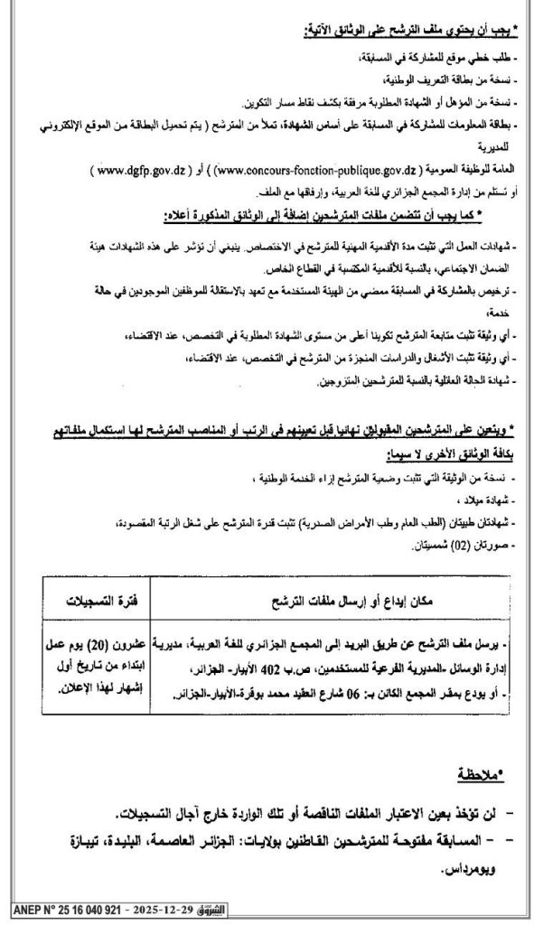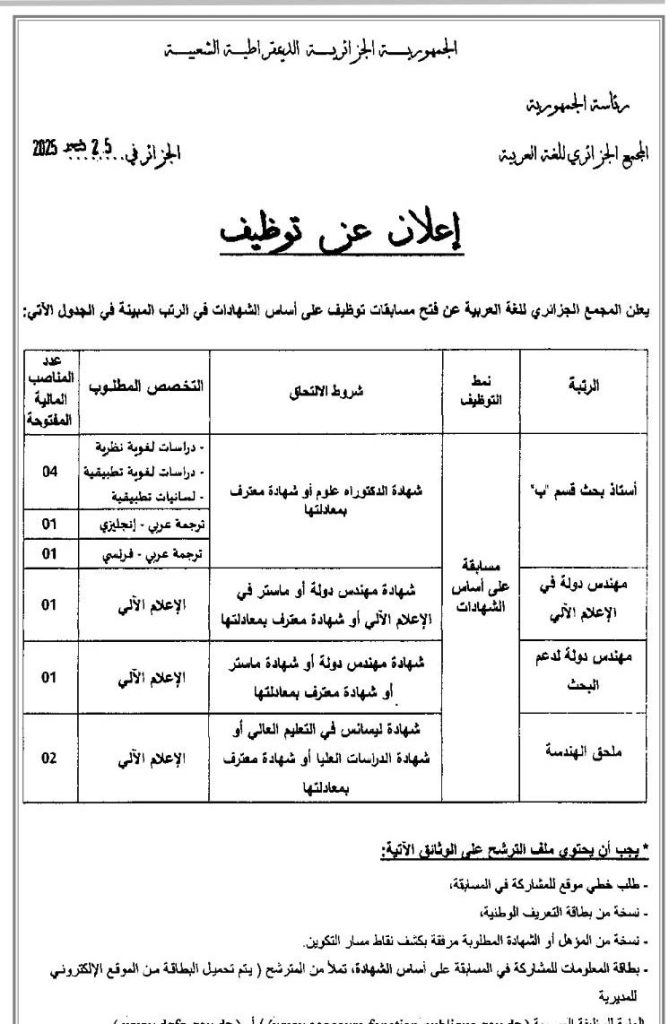 - إعلان عن توظيف بالمجمع الجزائري للغة العربية