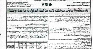 - إعلان عن توظيف بالمدرسة العليا في علوم وتكنولوجيات الإعلام الآلي والرقمنة