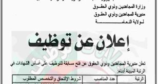 - إعلان عن مسابقة توظيف بمديرية المجاهدين وذوي الحقوق
